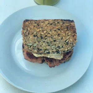 Sunflower seed ground, psyllium husk, Egg whites,Apple cider vinegar, sunflower seed, pumpkin seeds, white & black sesame seeds, water and Baking powder.